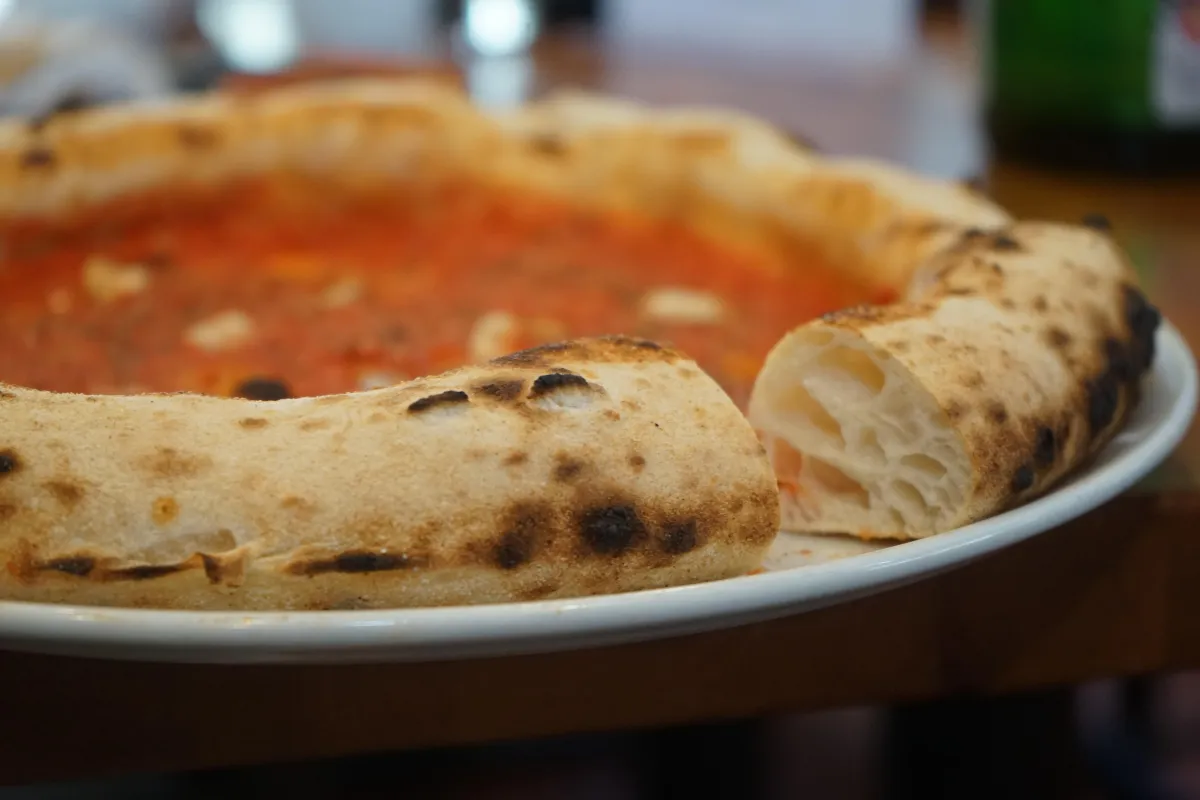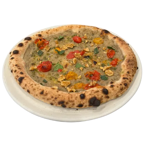 Biga preparata e reimpastata con un’idratazione all’80% 72 ore di maturazione nelle celle di lievitazione controllata per un impasto più digeribile e aromatico. Il risultato? Un impasto fragrante, leggero e ricco di sfumature, perfetto per ogni tipo di pizza.